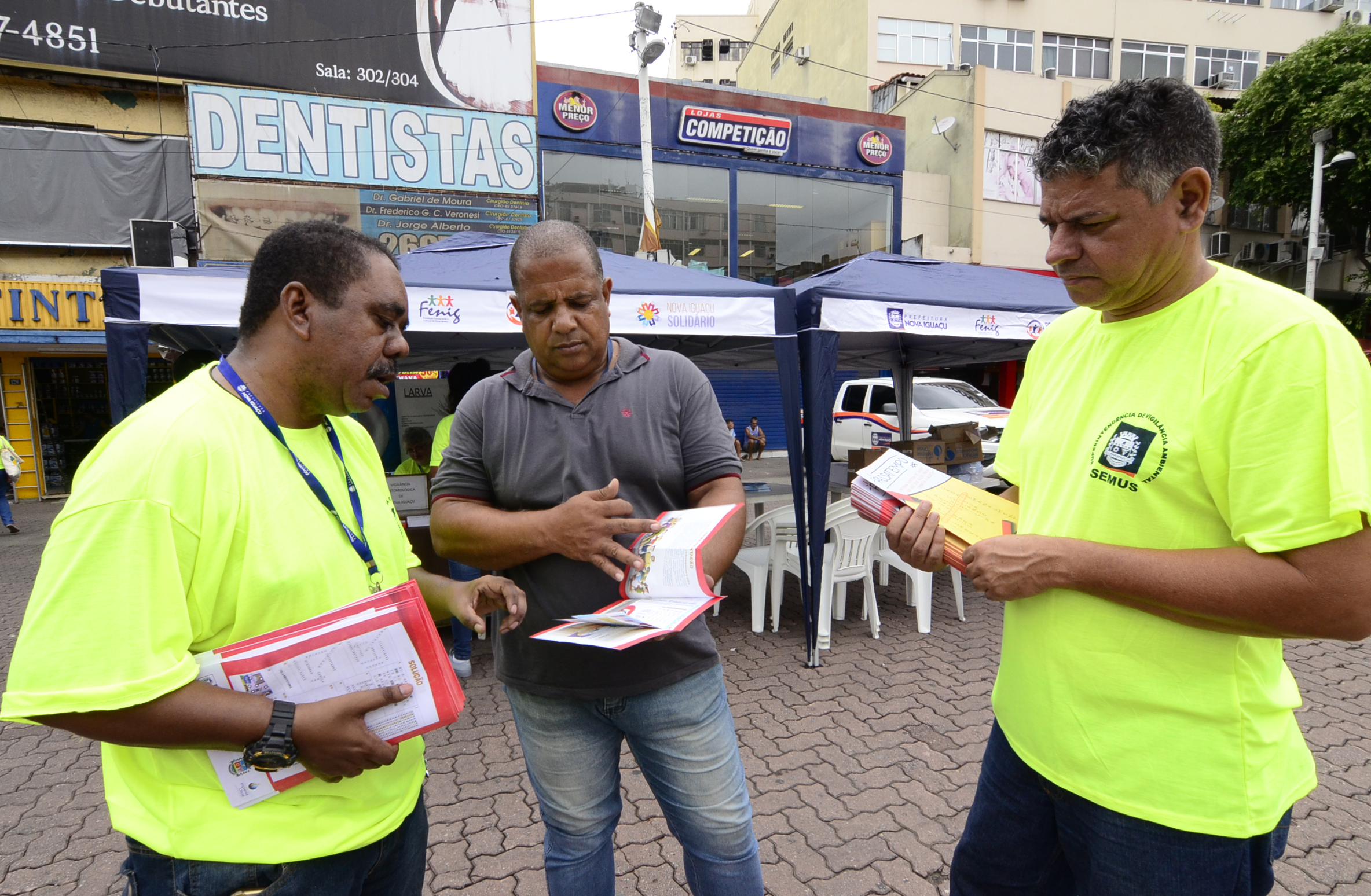 A luta contra o Aedes aegypti segue a todo vapor em Nova Iguaçu. Além de realizar diariamente ações contra o vetor, que transmite a dengue, zika e chikungunya, neste sábado (16), a Superintendência de Vigilância Ambiental (SUVAM), da Secretaria Municipal de Saúde (SEMUS), mobilizou agentes de combate a endemias para dois pontos estratégicos do município, por onde passam milhares de pessoas, com o objetivo de chamar a atenção da população sobre como evitar os focos do mosquito. As ações fizeram parte do Dia D de combate às arboviroses e começaram pela manhã, na Praça Rui Barbosa, no Centro. Quem esteve no local, recebeu uma revista com dicas e cuidados necessários para que não haja a proliferação do Aedes, acompanhada de um passatempo com atividades relacionadas ao assunto. À tarde, os frequentadores do Shopping Nova Iguaçu também receberam material informativo e tiraram dúvidas nas tendas da SUVAM.