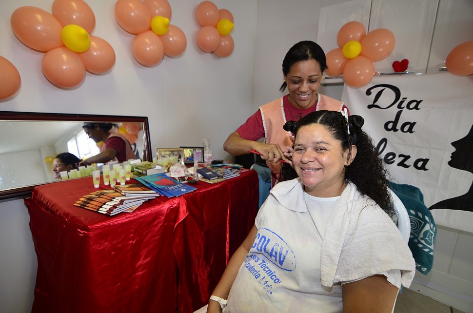 Grávida de 29 semanas, Aline Vieira dos Santos, de 34 anos está internada devido a um pico de glicose. Ela aproveitou para dar uma repaginada no visual, enquanto o marido Edmilson Conceição, de 38, participava da oficina de pintura de toalhinhas para o filho que também se chamará Arthur. “É um evento ótimo, muito legal. Estou tendo um dia de beleza que me distrai e meu marido também se diverte pintando uma toalha para nosso filho”, disse ela.