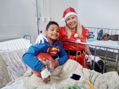 Em maio deste ano, Maria Patrícia de Oliveira, de 43 anos, acompanhou o filho Matheus, de nove, ao Hospital Geral de Nova Iguaçu (HGNI). Além de receber tratamento médico devido a uma celulite, o pequeno manteve, através da Classe Hospitalar, seus estudos atualizados durante os 17 dias que ficou internado. O vínculo criado neste período foi tão grande que ela retornou para participar da festa de Natal para as 26 crianças internadas, nesta terça-feira (17). Como voluntária, ela doou bolo.