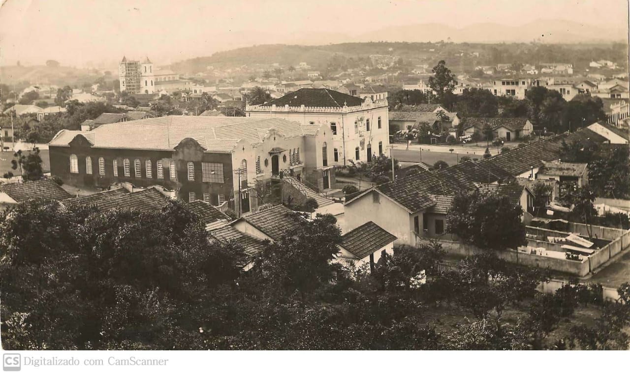 Crédito – Coleção Marcus Monteiro: O Hospital de Iguassú ao lado do edifício do Fórum e Cadeia, que depois de demolido daria lugar a Igreja de Nossa Senhora de Fátima e São Jorge