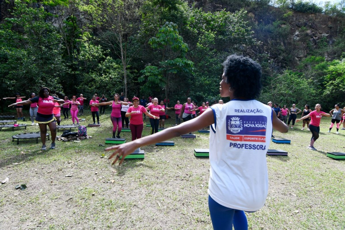 A Prefeitura de Nova Iguaçu levou o projeto “Ginástica nos Bairros” para um dia no Parque Natural Municipal de Nova Iguaçu, neste sábado (15). Em comemoração ao Dia do Professor e em alusão ao Outubro Rosa, cerca de 70 alunas se exercitaram envolvidas pelo meio ambiente.