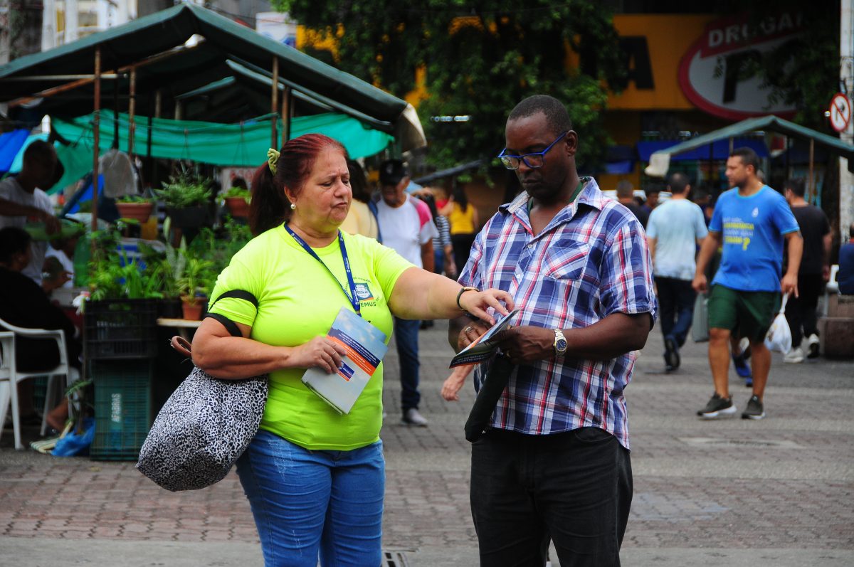 A Superintendência de Vigilância Ambiental (SUVAM), da Secretaria Municipal de Saúde (SEMUS) de Nova Iguaçu, promoveu, nesta quarta-feira (19), na Praça Rui Barbosa, no Centro, uma ação para conscientizar a população sobre como combater ao Aedes Aegypti, transmissor da dengue, zika e chicungunya. Agentes da SUVAM distribuíram folhetos educativos com orientações sobre como evitar focos do mosquito.