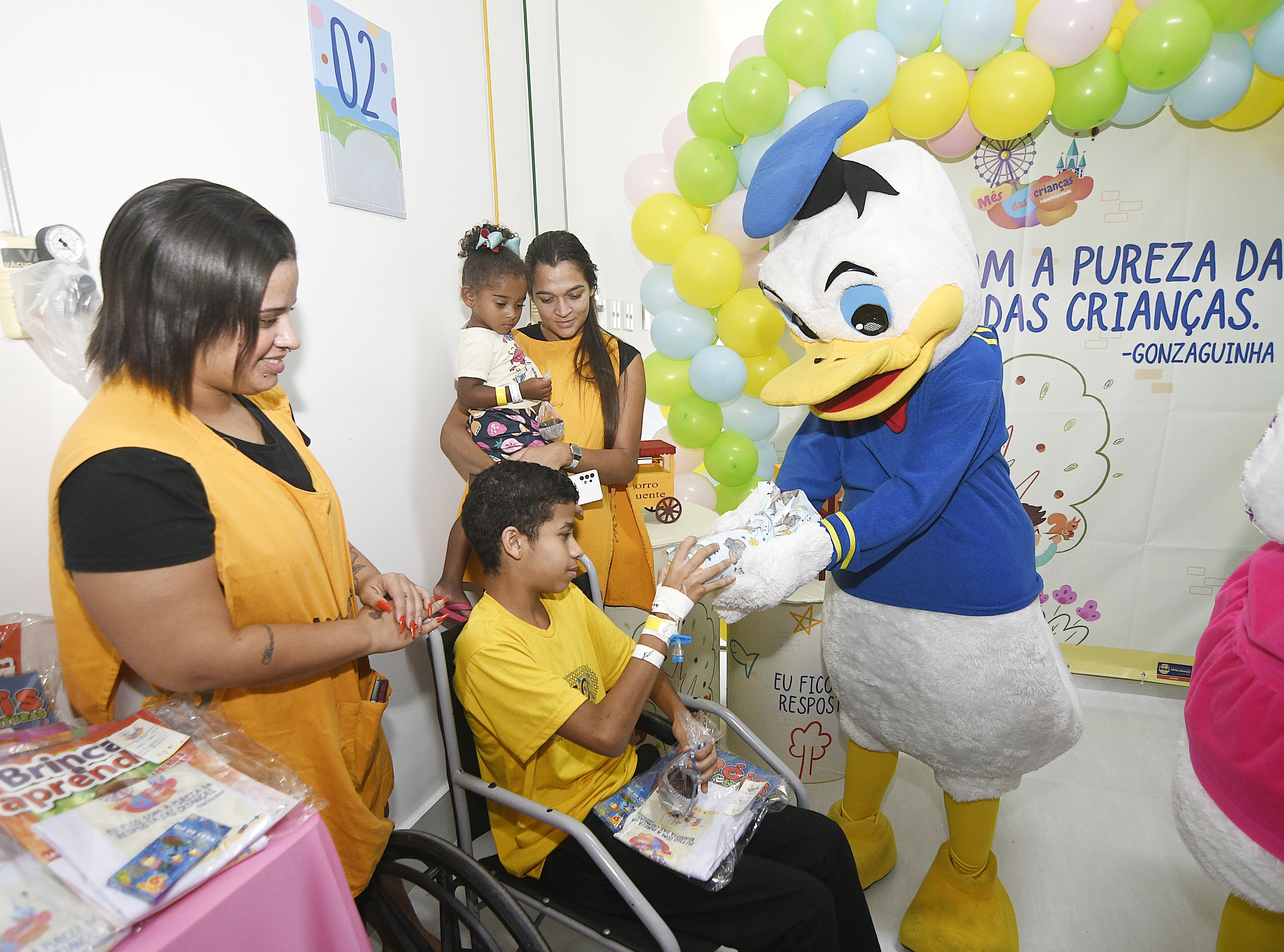 Os personagens Donald e Margarida, da Turma do Mickey Mouse, deram início às atividades passando por cada enfermaria convidando as crianças para brincar. Cada uma recebeu presentes, entre brinquedos, camisetas, livros para colorir, e ganhou uma refeição temática, específica para o Dia das Crianças. A comemoração também aconteceu na ala de emergência pediátrica, onde os pacientes infantis que aguardavam atendimento interagiram e foram presenteados pelas equipes do HGNI.
