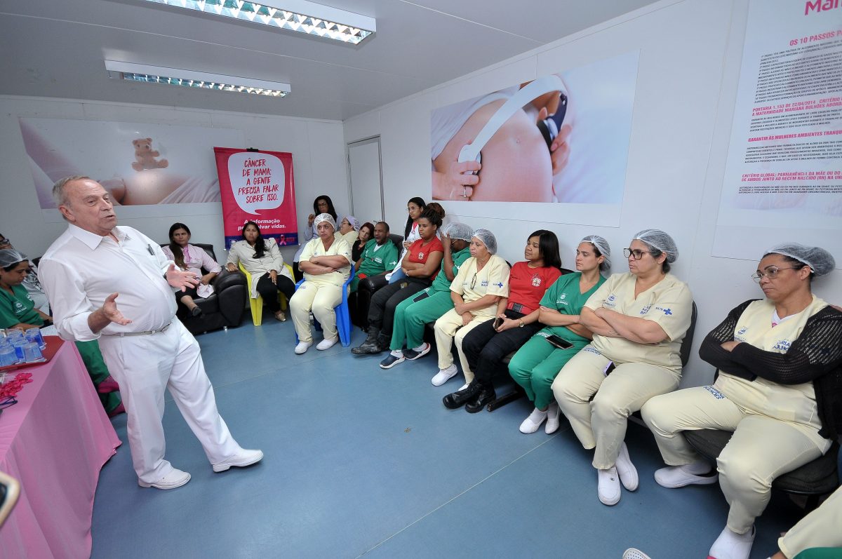 A Maternidade Mariana Bulhões promoveu, nesta quarta-feira (18), um bate-papo com seus profissionais da saúde sobre o câncer de mama. O objetivo foi orientá-los sobre a necessidade do acompanhamento médico, diagnóstico precoce e tratamento da doença. A ação faz parte da campanha Outubro Rosa e se estende a todas as unidades de saúde municipal de Nova Iguaçu neste mês.