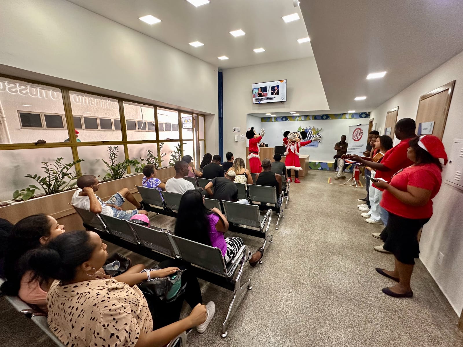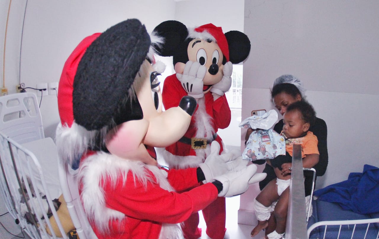 O clima natalino chegou ao Hospital Geral de Nova Iguaçu (HGNI) com uma série de ações realizadas para pacientes e colaboradores. Nesta sexta-feira (20), crianças internadas na ala pediátrica tiveram um dia especial com a visita dos personagens Mickey e Minnie, além do Papai Noel. Durante a celebração, os pequenos receberam presentes, participaram de atividades interativas e tiraram fotos com os personagens, em um momento que trouxe descontração e um ambiente mais acolhedor na unidade hospitalar.