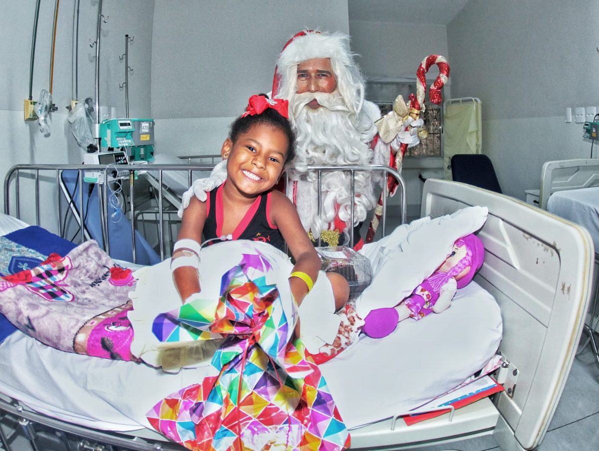 A pequena Fabíola, de 5 anos, aguardava ansiosa a chegada do Papai Noel. Por momentos a internação, que já dura 13 dias, ficou em segundo plano diante da alegria em interagir com o bom velhinho e os personagens. Sua mãe, Maria Shirley, de 42 anos, ficou feliz ao ver a alegria da filha.