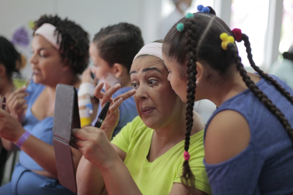Mães e acompanhantes de crianças recebem serviços de beleza oferecidos pelo HGNI