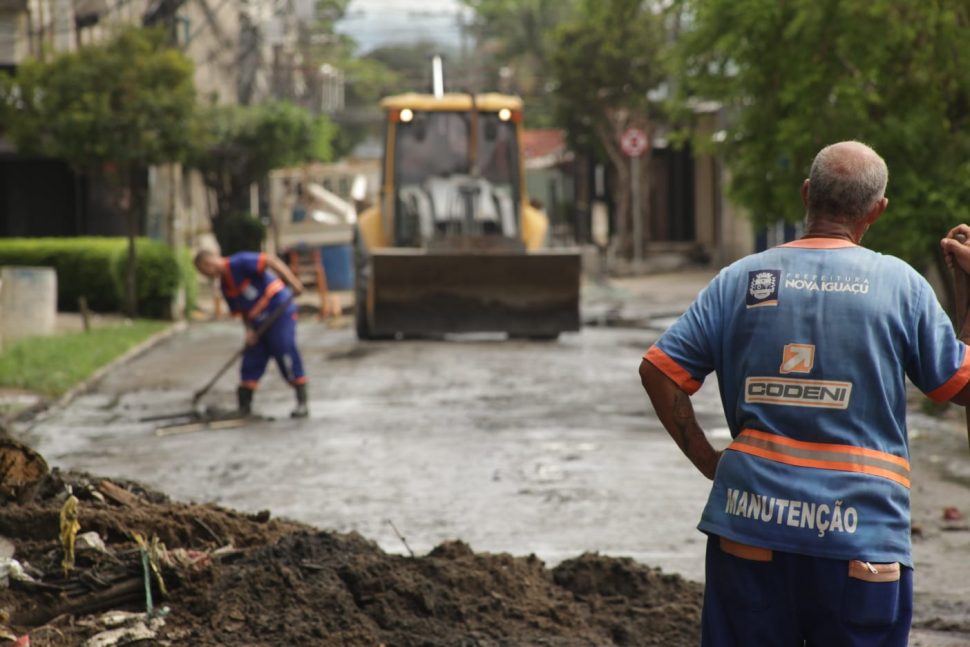 Equipes de diversas secretarias municipais de Nova Iguaçu atuam na limpeza de ruas, rios e córregos, retirada de galhos, desobstrução de bueiros e demais serviços emergenciais. O maquinário solicitado pelo prefeito Dudu Reina ao governador Cláudio Castro ajuda nas ações emergenciais.